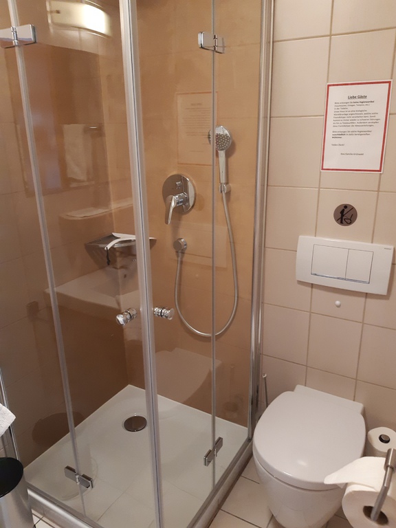 Schlafzimmer sowie einem Badezimmer mit Dusche.